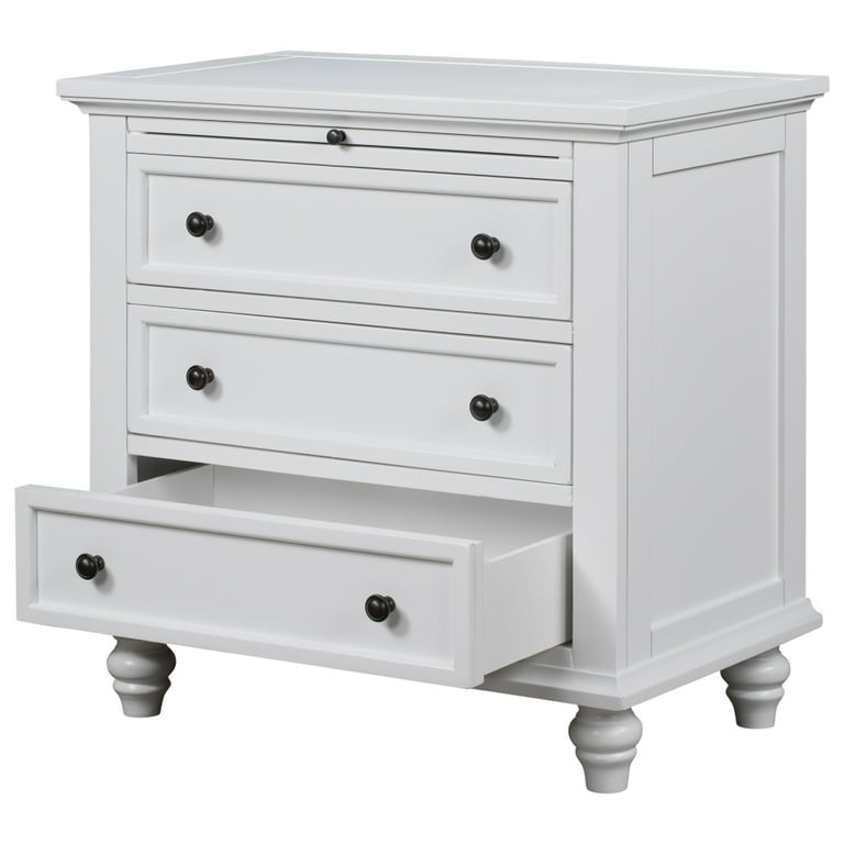 Nightstand With 3 Storage Drawers Wood Cabinet Bedside Table With Pull Out Tray And Sturdy Base End Table Sofa Side Accent Table For Bedroom Living Room White Walmart Com